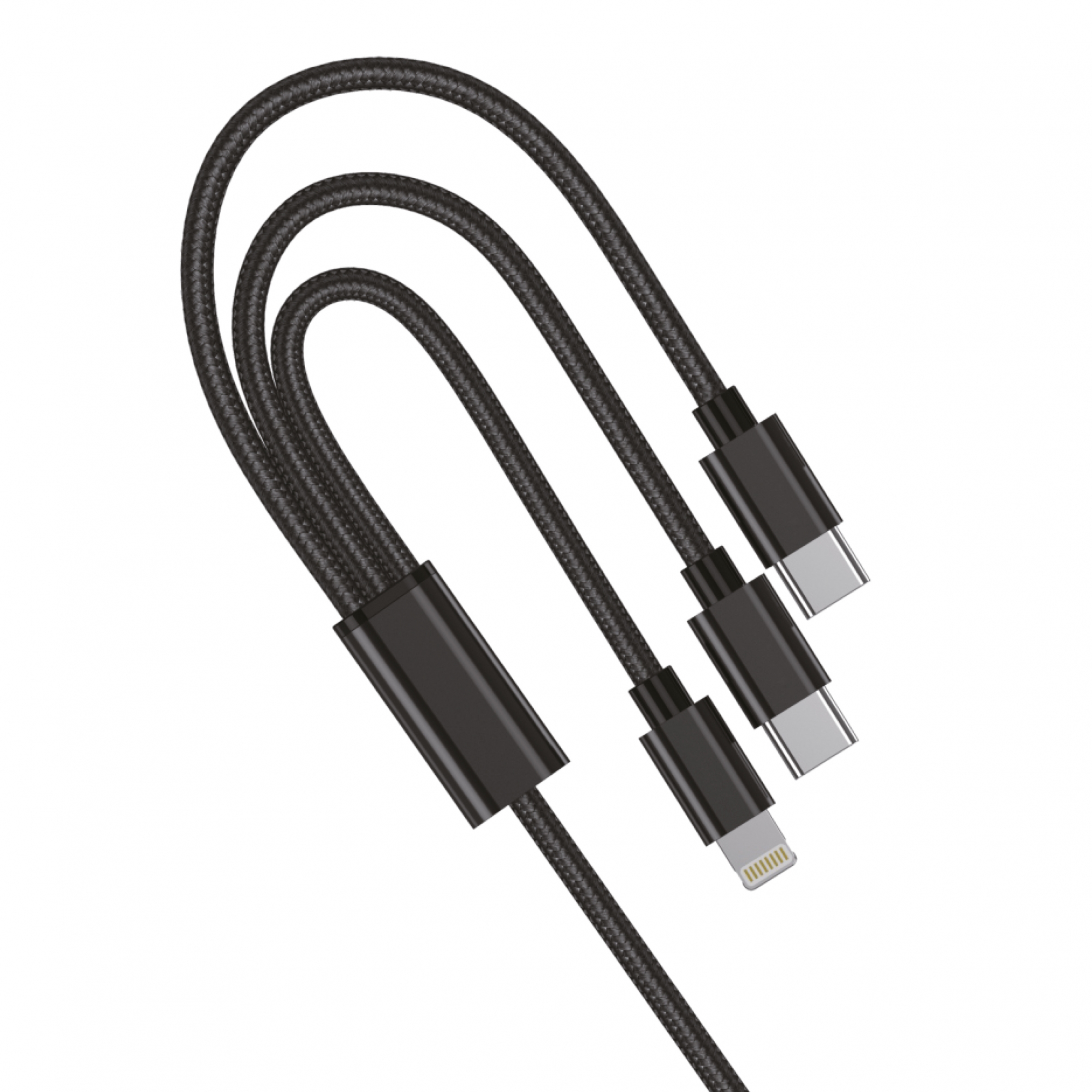 Take this cable with you everywhere and enjoy super fast charging for all your devices. This 3-in-1 charger allows you to meet daily needs while traveling, at work or in your car. Thanks to these 3 connectors (Lightning, Micro USB, USB Type-C) you can charge your different devices simultaneously. With its braided nylon finishes, it offers you optimal protection and a longer lifespan.